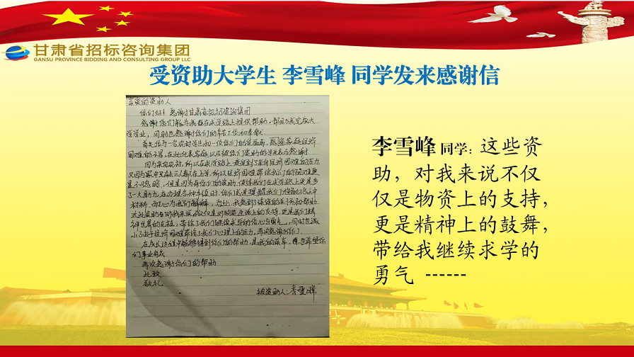 甘肅省招標咨詢集團有限責任公司心系困難學(xué)子 真幫實助顯真情