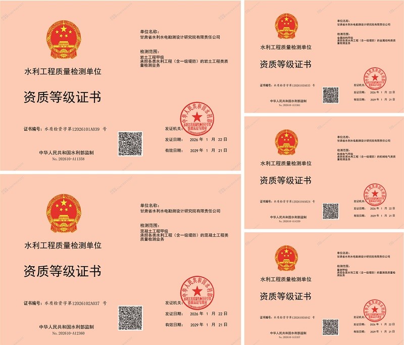 近期,省水電設計院成功獲批巖土工程、混凝土工程、金屬結構、機械電氣、量測五項水利工程質量檢測甲級資質,標志著公司在水利檢測全域布局實現跨越式突破。